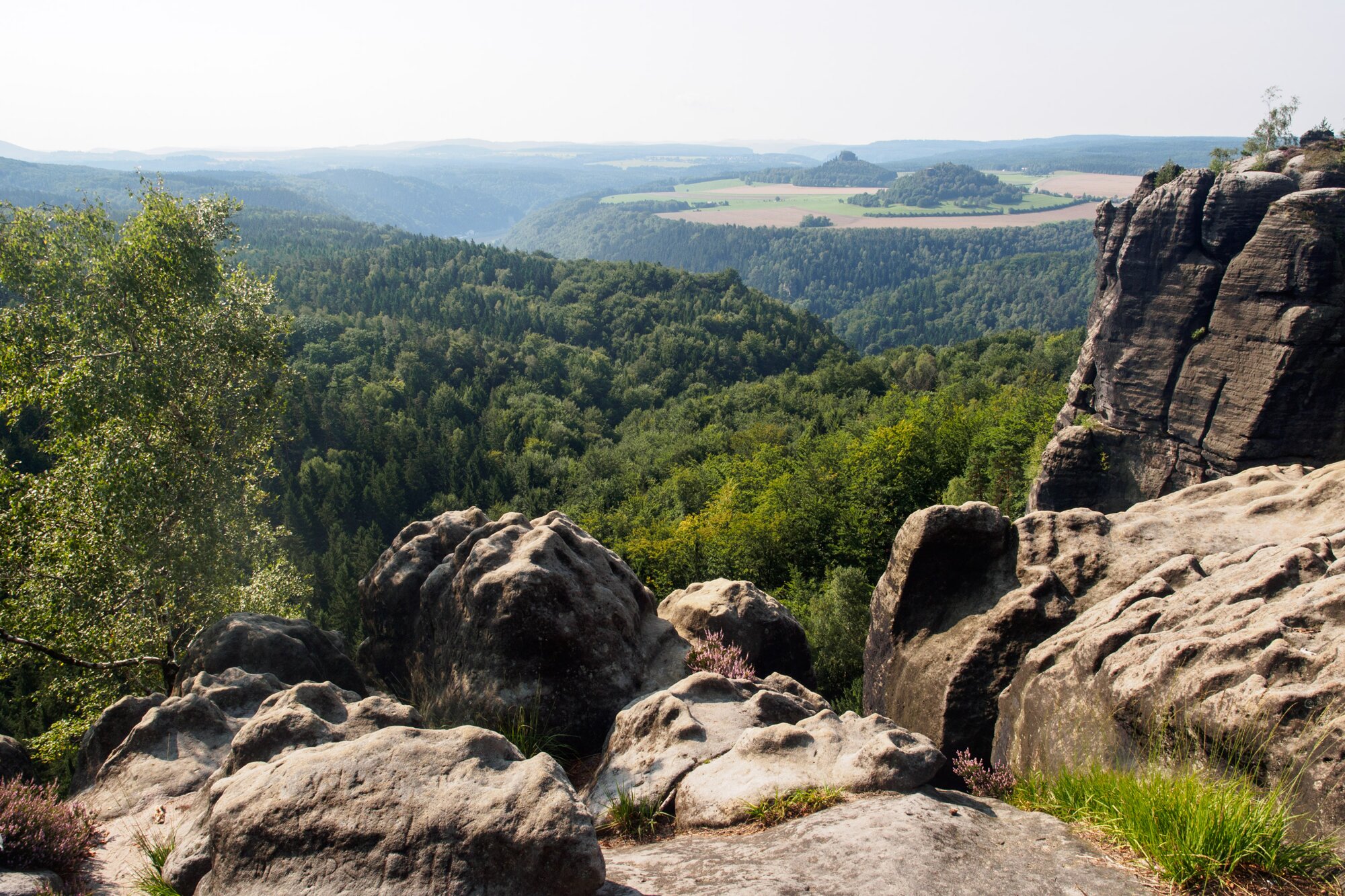 Aussicht Breite Kluft mit Blick zum Rauschenstein. Wanderung vom Nassen Grund im Kirnitzschtal zur Domerkeraussicht, weiter zu den Schammsteinen und zurück zum Nassen Grund.