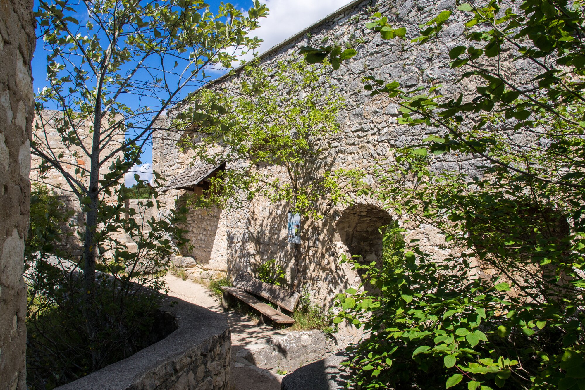 Rusenschloss Zugfahrt von Blaustein nach Herrlingen. Wanderung vom Bahnhof Herrlingen über das Rommel-Denkmal und Wippingen zum Rusenschloss oberhalb von Blaubeuren. Von dort Abstieg zum Bahnhof Blaubeuren und Rückfahrt mit dem Zug nach Blaustein.
