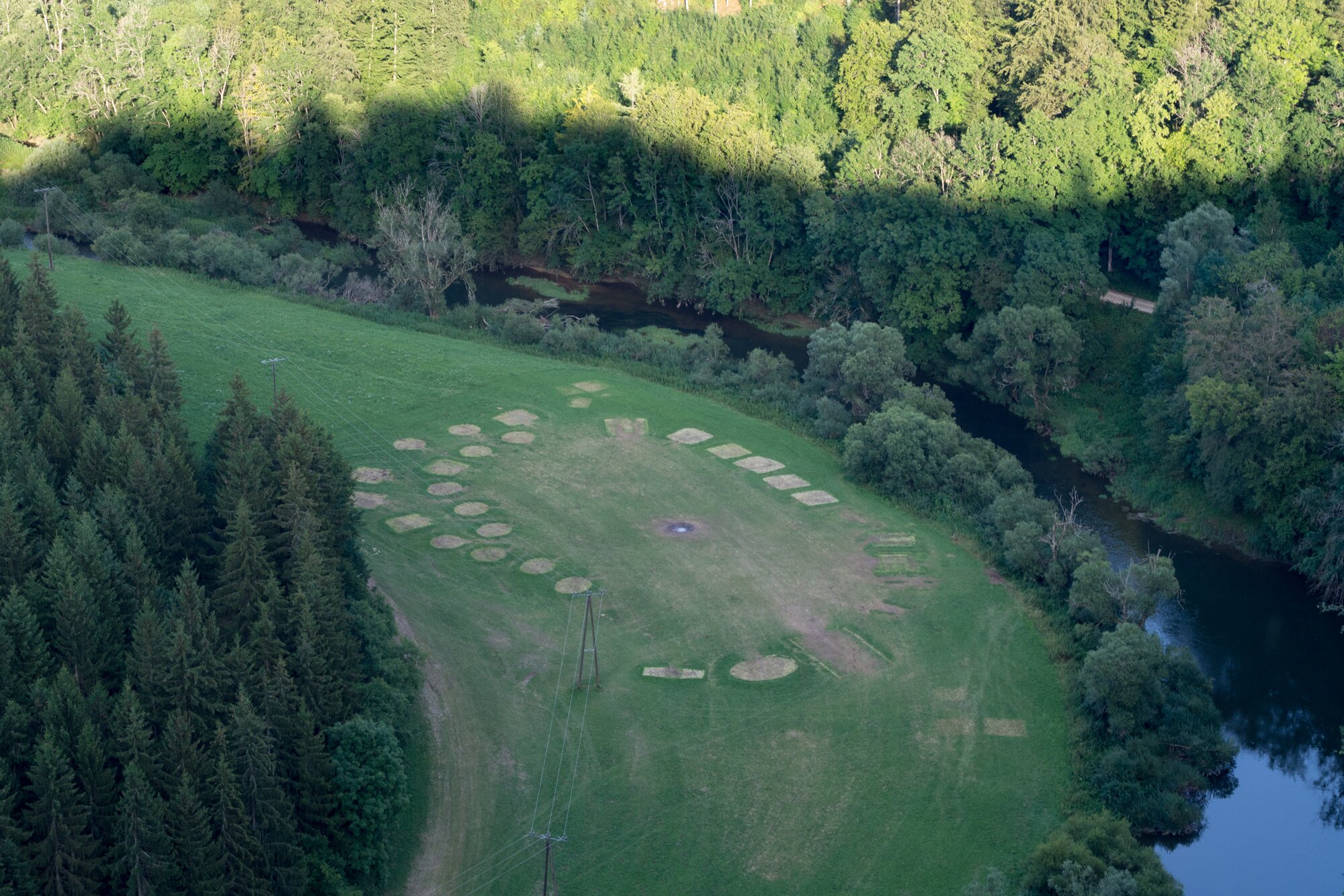 Aussicht Knopfmacherfelsen auf das ehemalige Zeltlager Wanderung im Oberen Donautal: Route: Start am Kloster Beuron - Knopfmacherfels - Jägerhaus (im Donautal) - Ziegelhütte (im Donautal) - Leibfelsen - Stiegelesfelsen - Knopfmacherfels - Kloster Beuron