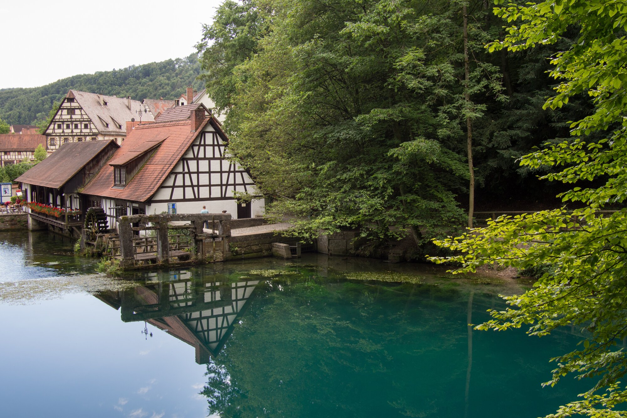Spiegelungen am Blautopf Wanderung von Blaubeuren Bahnhof zum Rusenschloss. Von dort über den Knoblauchfelsen zum Blaufelsen. Hinunter zur B28. Diese überquerend Aufstieg auf Teerweg bis zur Steigziegelhütte, da Abzweig nach links zum Landeplatz Seißen nicht gefunden. Entlang am Waldrand zur Wegmarkierung. Dieser folgend zur Günzelburg. Von dort zum Felsenlabyrinth und zur Küssenden Sau. Abstiefg zum Bahnhof. Mit dem Auto zum Blautopf.