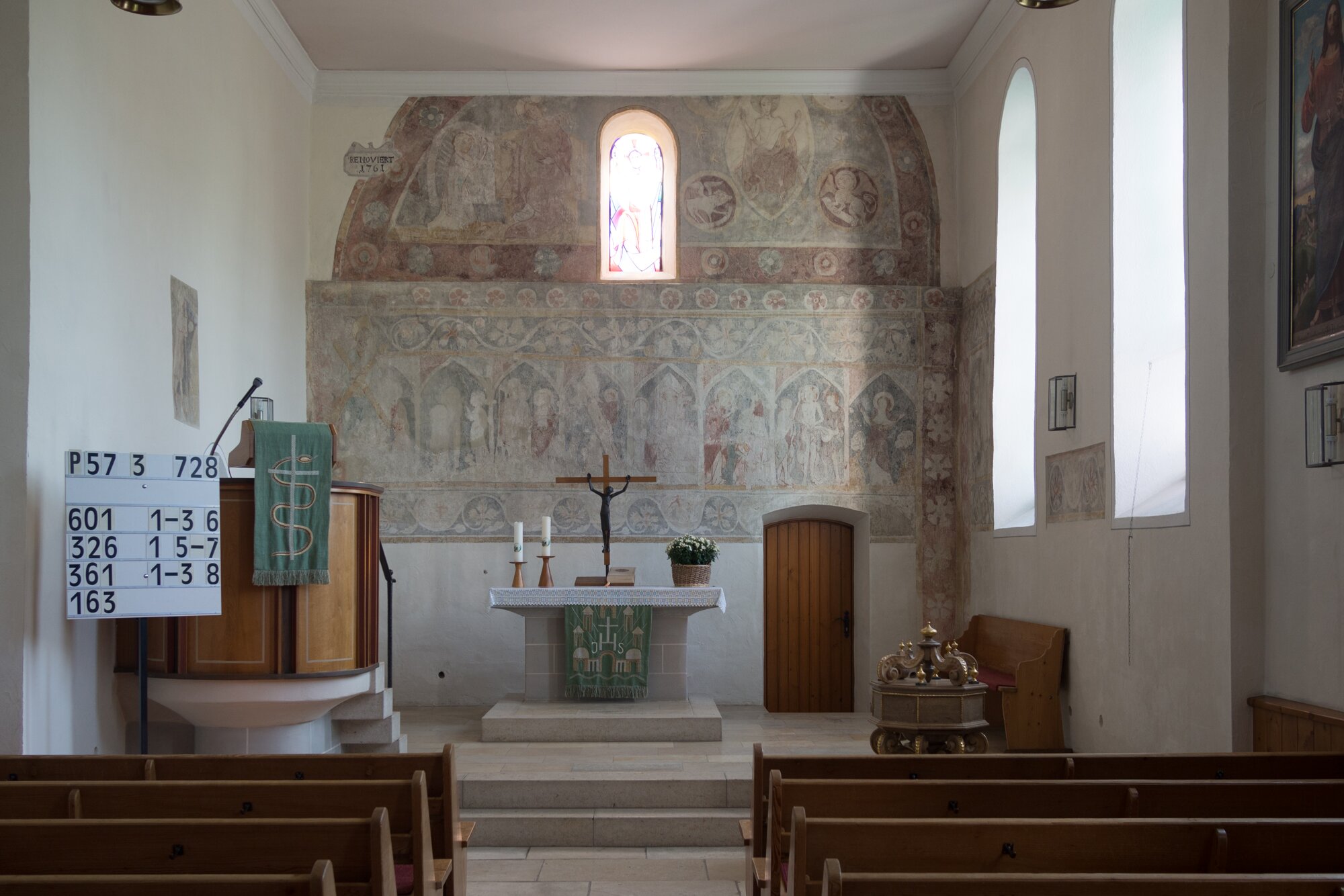 Bartholomäuskirche Setzingen Wanderung mit Route: Setzingen - Lonetal m. Bocksteinhöhle (nur Andreas, da zu steiler Aufstieg ohne Stecken), Hohlenstein - Lindenau (Tee-Kuchen-Bier-Pause) - Setzingen