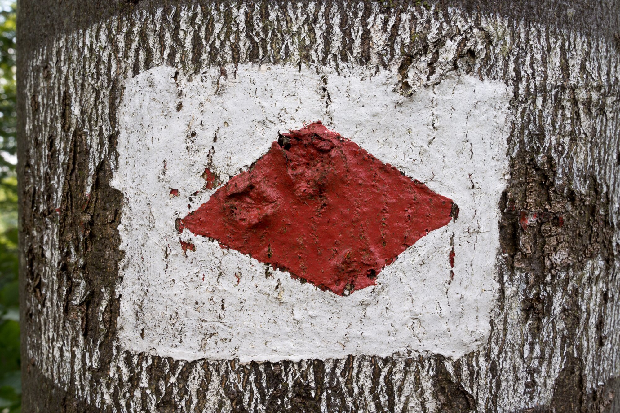 Verschieden gelungene Versuche der Wanderwarte vom Schwäbischen Albverein, eine rote Raute hinzukriegen. Wanderung vom Bahnhof Geislingen an der Steige über den Anwandfels und den Himmelsfels nach Eybach. Von dort durch das Felsental über Weiler zur Ruine Helfenstein und zurück zum Bahnhof.