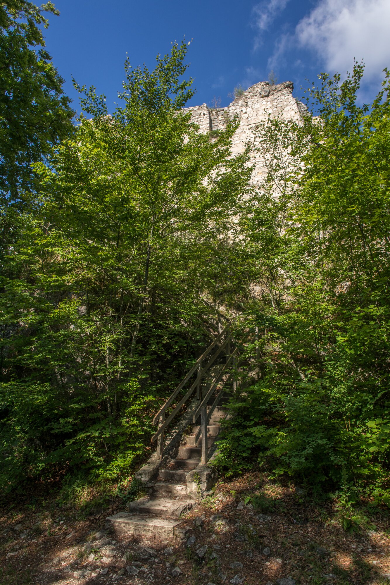 Auf dem Rusenschloss. Wanderung von Blaubeuren Bahnhof zum Rusenschloss. Von dort über den Knoblauchfelsen zum Blaufelsen. Hinunter zur B28. Diese überquerend Aufstieg auf Teerweg bis zur Steigziegelhütte, da Abzweig nach links zum Landeplatz Seißen nicht gefunden. Entlang am Waldrand zur Wegmarkierung. Dieser folgend zur Günzelburg. Von dort zum Felsenlabyrinth und zur Küssenden Sau. Abstiefg zum Bahnhof. Mit dem Auto zum Blautopf.