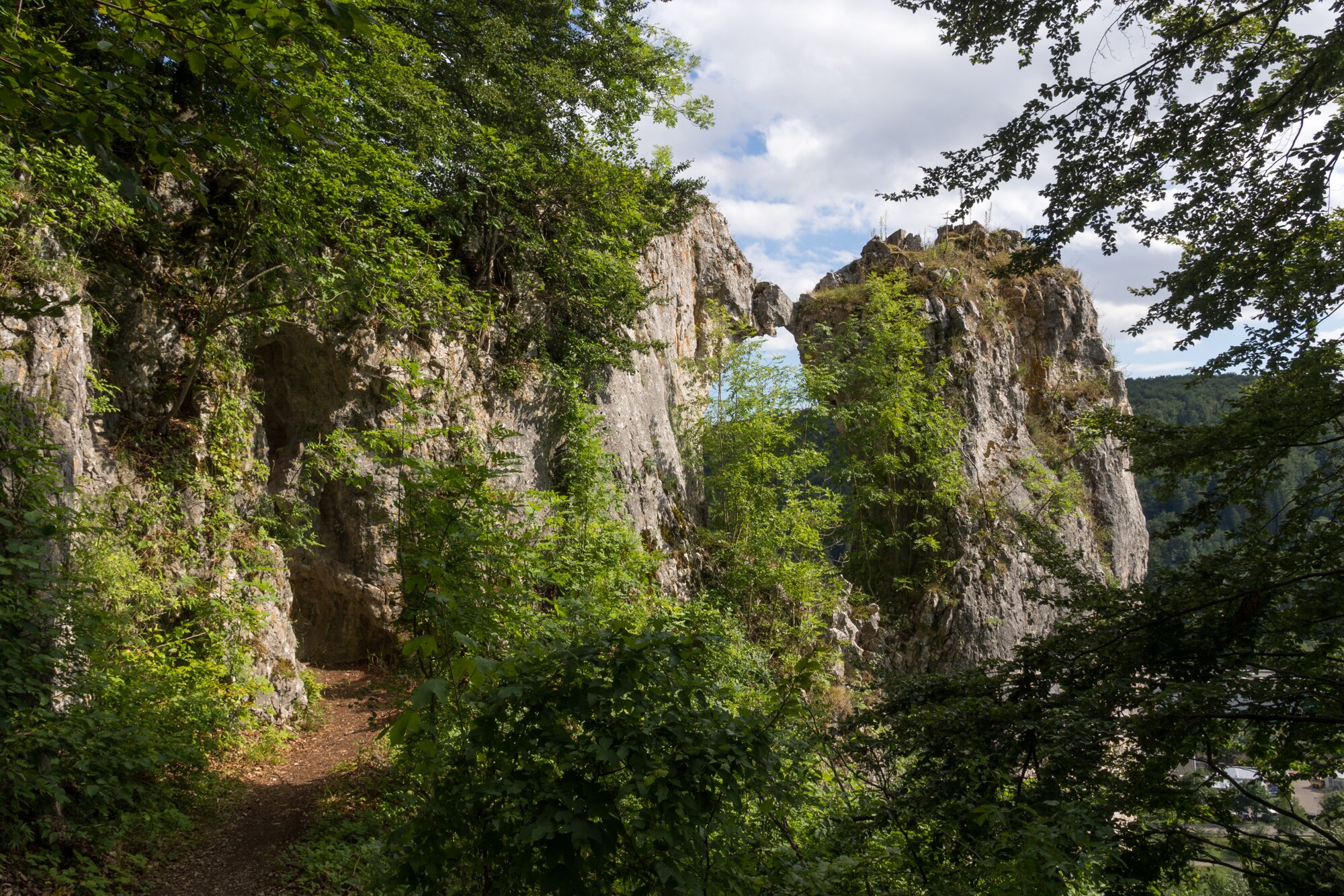 Felsenlabyrinth mit Küssender Sau Wanderung von Blaubeuren Bahnhof zum Rusenschloss. Von dort über den Knoblauchfelsen zum Blaufelsen. Hinunter zur B28. Diese überquerend Aufstieg auf Teerweg bis zur Steigziegelhütte, da Abzweig nach links zum Landeplatz Seißen nicht gefunden. Entlang am Waldrand zur Wegmarkierung. Dieser folgend zur Günzelburg. Von dort zum Felsenlabyrinth und zur Küssenden Sau. Abstiefg zum Bahnhof. Mit dem Auto zum Blautopf.